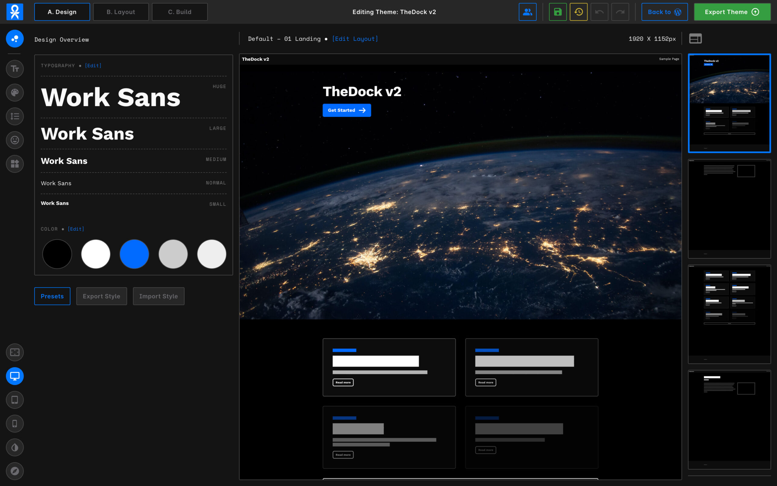 TheDock is a visual editor for teams to create websites faster. Themes built with TheDock look sharp, perform great and are easily maintained by anyone on your team or by your client.