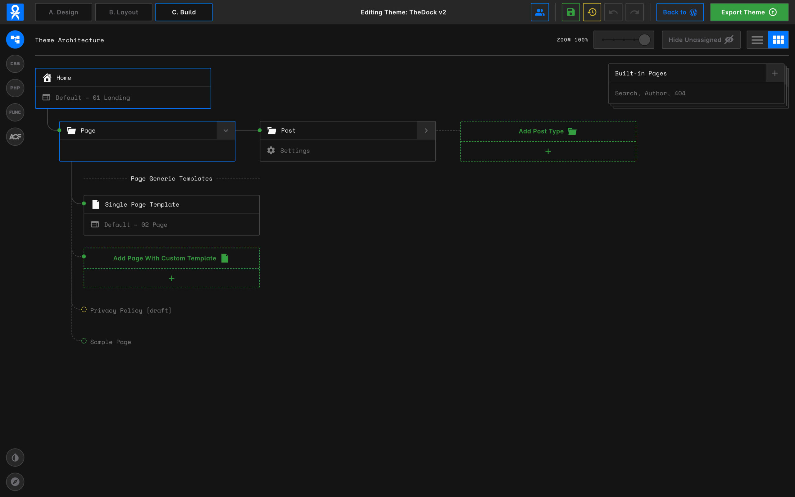 Since TheDock run on top of WordPress application, all theme editing happens in the cloud. Gone are the days of .env files, local environments and deployment routines.