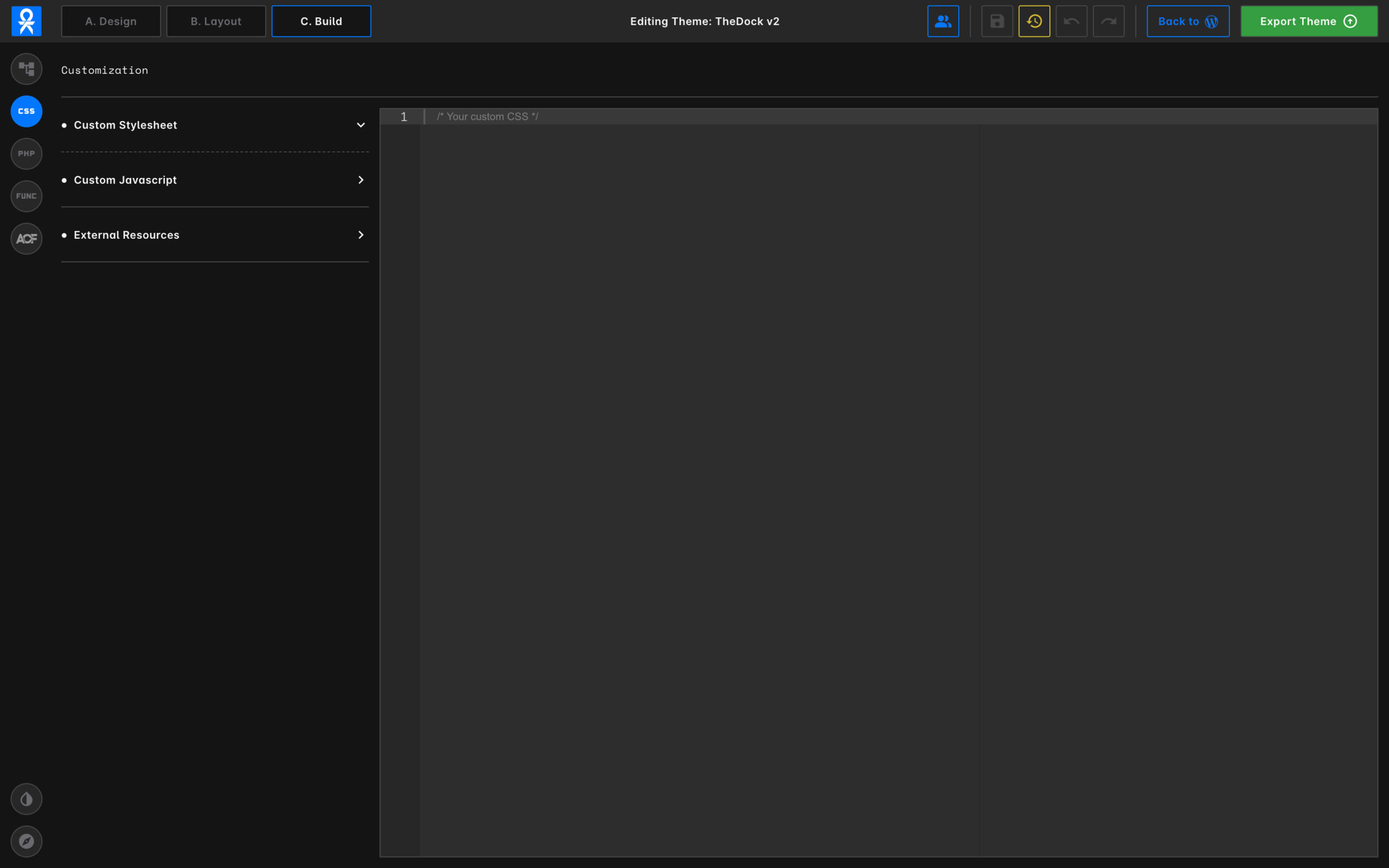 Add custom functions in PHP by extending your function.php file from within TheDock.